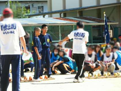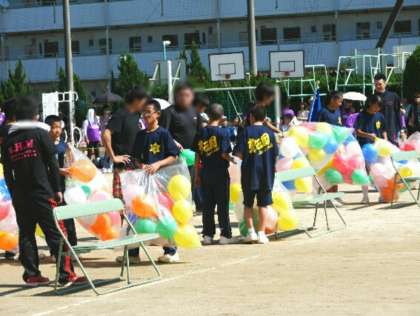 新東三国地域の運動会が新東三国小学校で行われています。ジュニアリーダー達が活躍しています。
