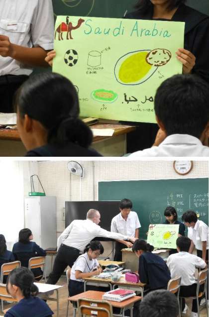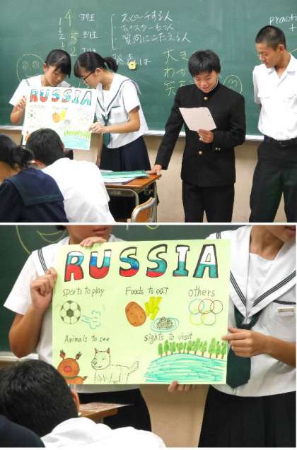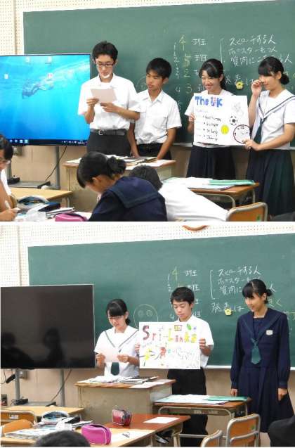 3年生では、図書館の本などで、世界の行ってみたい国について調べてきました。今日はその発表会です。もちろん、スピーチは英語です。終わったら、ネイティブ英語の先生から、英語で質問もあります。うまく答えられたかな。