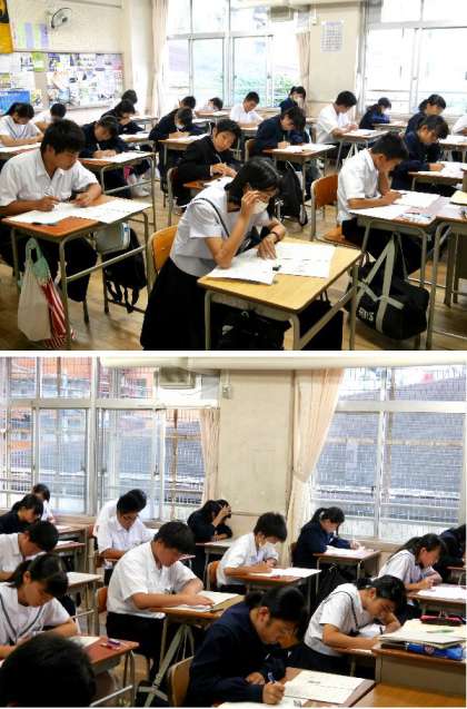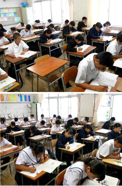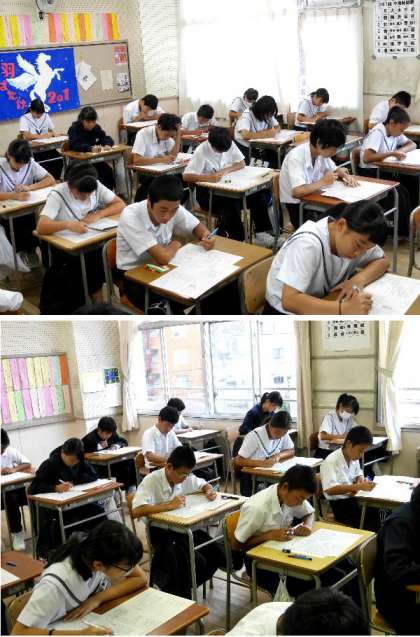 中間テストを受けている様子です。あきらめずにがんばりましょう。