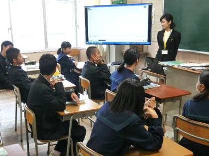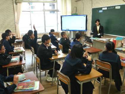 1年生の英語の授業で教育実習の先生が生徒たちから質問をうけていました。もちろん、英語の授業だから、英語で質問します。