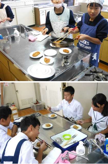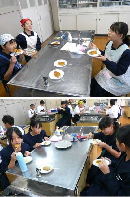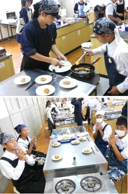 1年生は家庭科で調理実習です。「つくね」をつくりました。ごちそうになりました。とても、ジューシーでおいしかったです。お家でも作ってみてはいかがですか。