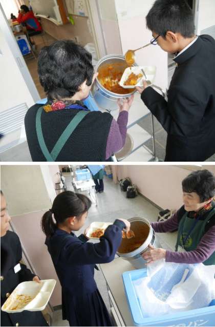 今日の献立は、ハヤシライス、牛乳、やさいサラダ、ソフト黒豆です。ハヤシライスは子どもたちも好きです。おかわりしている子もいました。