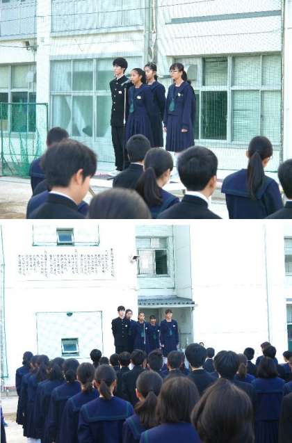 全校集会で、後期生徒会役員が全校生徒の前で挨拶をしました。よろしくお願いいたします。校長先生からは、文化発表会が終わり、いよいよ3年生も卒業に向けて頑張るときです。「志ある者は、事竟に成る」という言葉が中国の皇帝が言っています。志をしっかりもって頑張っていきましょう。