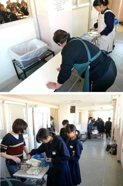 元気アップボランティアさんは、いつも丁寧に支援いただきありがとうございます。配膳机も端から端まで丁寧に拭いてピカピカにしてくれています。