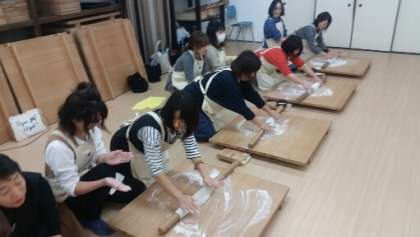 今日はPTA社会見学で滋賀県でそばうちを体験しました。悪戦苦闘でしたが美味しくできました。