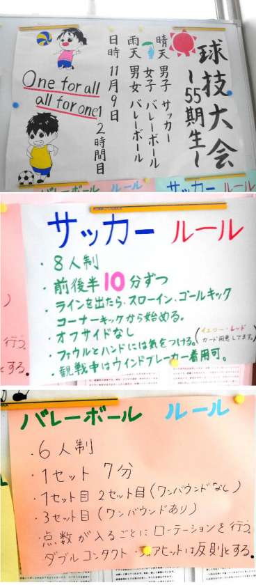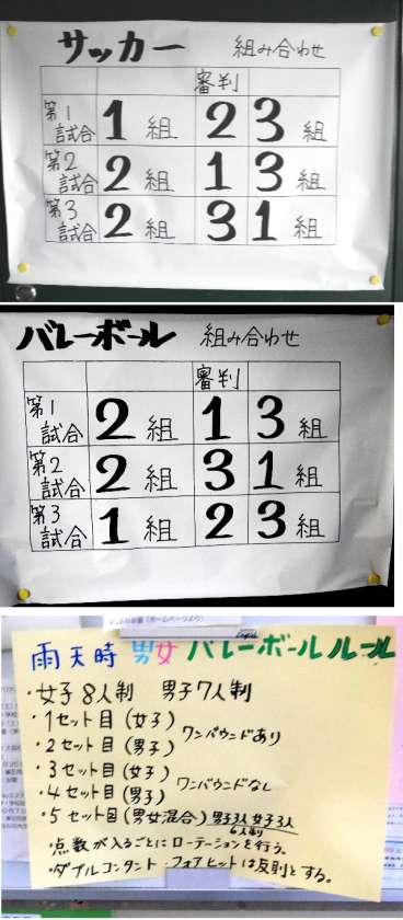 明日は3年球技大会です。対戦組み合わせが決まりました。