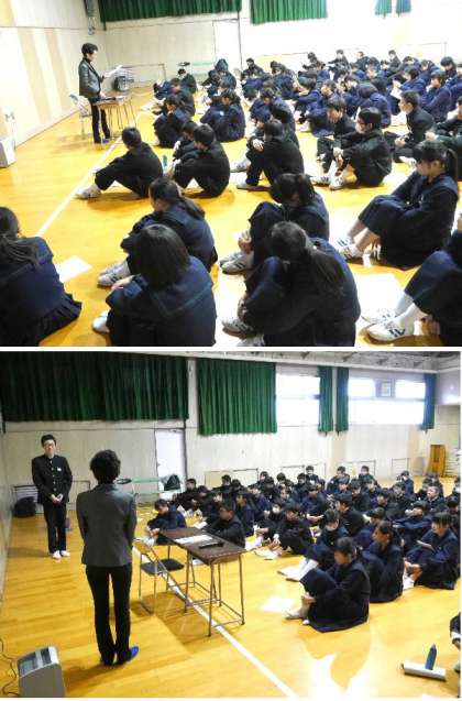 3年生は出前授業で、NPOアカデミックハラスメントをなくすネットワークから川西先生に来ていただき講話していただきました。誰かを好きになり、恋愛の中で暴力を受けたりする事案が若者の間で増えているそうです。対等なはずの恋愛が、いつしか支配され暴力や被害をうけてしまうのです。被害者も好きな相手に疑問ももたない状況に陥ることがあるそうです。人間同士のコミュニケーションのあり方考えたいですね。