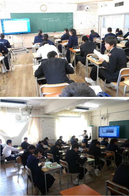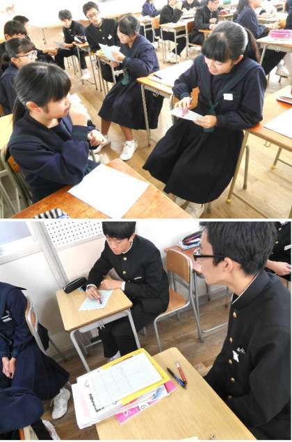 どんなイベントが好きですか、と英語で聞かれいます。ペアになって会話をしています。しっかりと、英語聞いて理解でき、発音できるようになってきたかな。