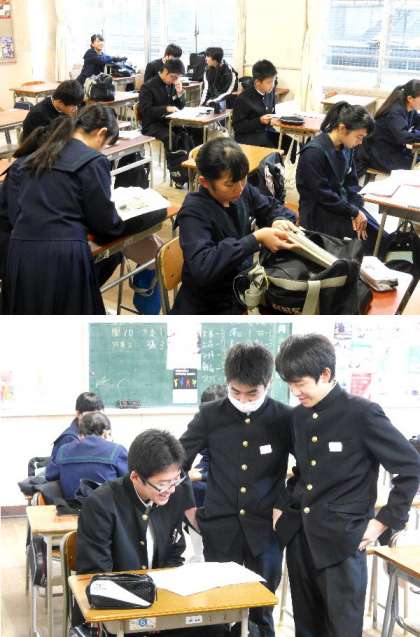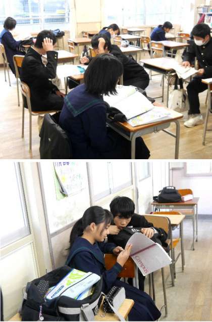 今日から期末テストがはじまります。テスト前の教室では、しっかり見直す生徒たちが黙々と勉強していました。