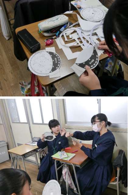 3年生の理科では、星座板を作っていました。冬の大三角形が見られるようです。冬は空気が澄んでいて、きれいに星空がみえますね。実際に見えるかどうか確認してみてください。