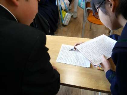 3年国語では漢文を学習しています。生徒たちは漢字の読む順番にチャレンジ!レ点など順番が変わるので難しいですね。