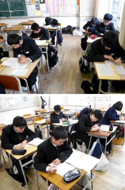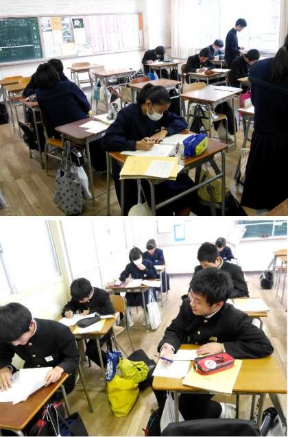2年生は、昨日、高校訪問でいろいろな高校にお世話になりました。今日はお世話になった高校にお礼状を書いています。