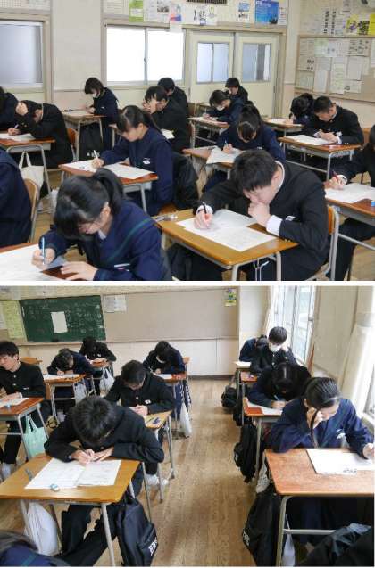 今日と明日は、第5回目の実力テストです。中学校生活最後の実力テストです。しっかりと自分の力を発揮してほしいです。落ち着いて、最後まであきらめないでがんばってくださいね。