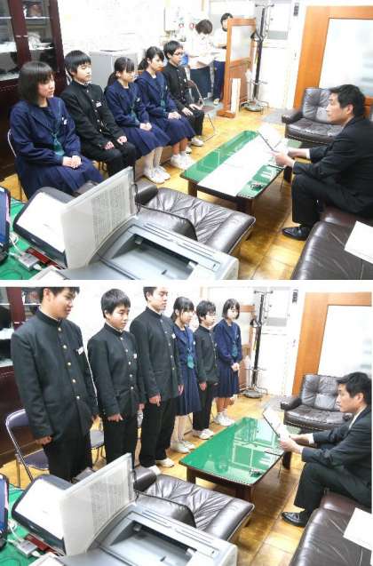 今日から、校長室での面接練習がはじまりました。とても緊張していて、うまくしゃべれない場面もあります。経験をかさねて練習して慣れておくことも大切ですね。