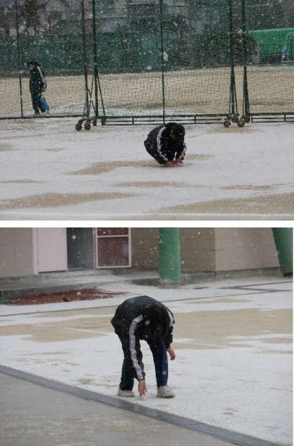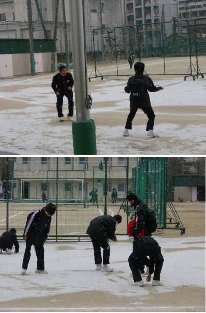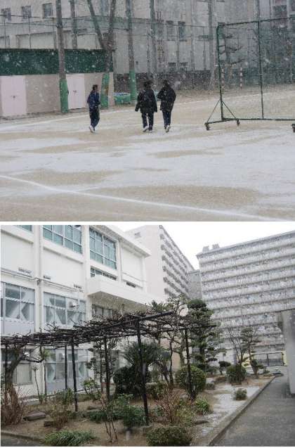 今週はとても寒い日がつづきます。放課後に雪がふってきました。運動場も真っ白になっています。生徒たちは雪なげしている子もいます。元気いっぱいですね。