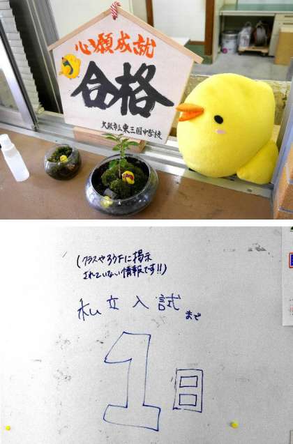 玄関には「合格」ひがっぴーが飾られています。