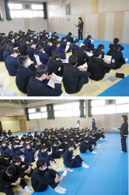 明日、3年生は私立高校の入試があります。その事前の指導を格技室で行っています。明日は朝早くに出発する生徒も多いです。東三国駅、三国駅、東淀川駅では、3年の先生たちがチェックして見送ります。忘れ物のないように、時間にゆとりをもって、落ち着いて自分の力を発揮してください。