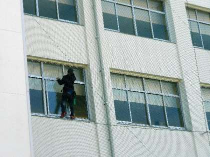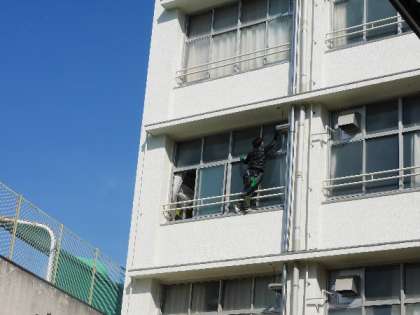 高所窓清掃!卒業前に校舎をきれいに