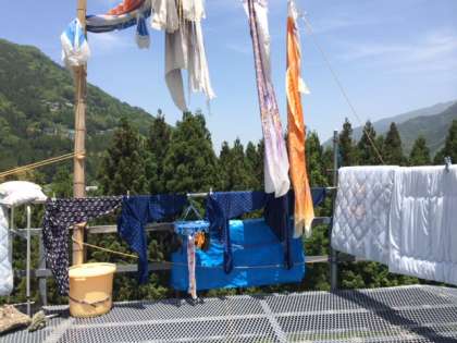 こいのぼりのに干してある「もんぺ」・・・。