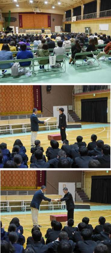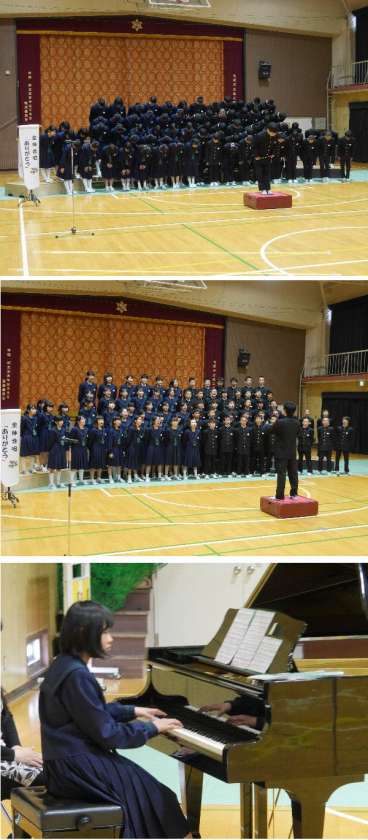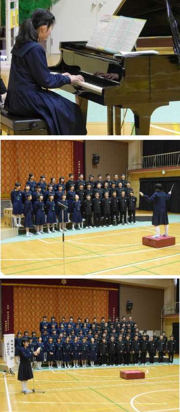 1年生の歌のつどいがありました。1年1組と1年2組が、課題曲と自由曲の2曲を歌い、最後に全体合唱で監視やの気持ちを込めて「ありがとう」を歌いました。とてもよかったです。たくさん保護者の方々も見に来られていました。1年生もこの1年で成長しました。
