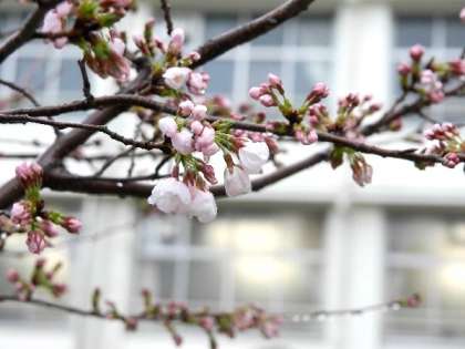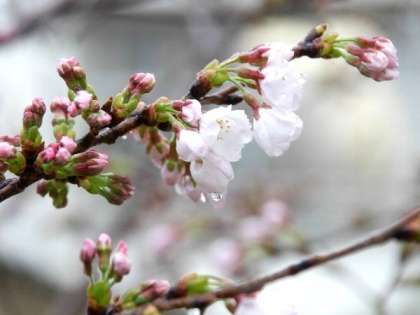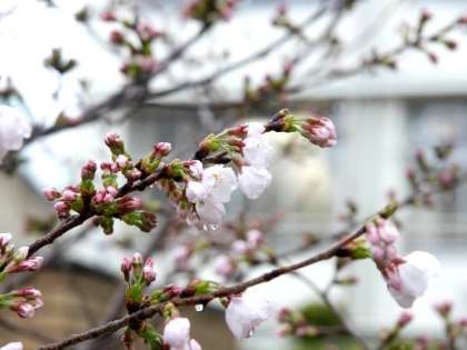 今日は公立高校一般選抜の発表の日でした。その日にあわせたように、桜が開花しました。小雨ですが、昔から、雨降って地かたまる・・といいます。