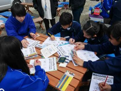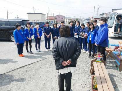 陸前小野駅前にもどり、空の駅で小野くん製作の話を聞きました。