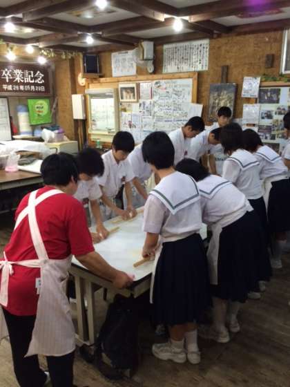 「中野うどん学校」に到着し、いよいよ手打ちうどんに挑戦です。