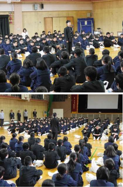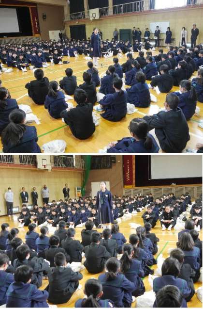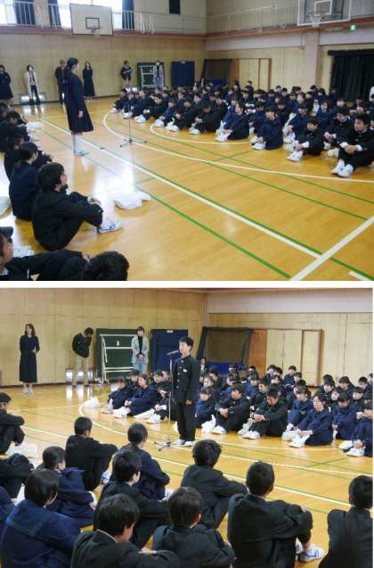 入学式では全生徒が参列していないので、今日は対面式がありました。新1年生と2・3年生が向かい合い、それぞれ歓迎の言葉や新入生誓いの言葉をかわしました。よろしくお願いいたします。
