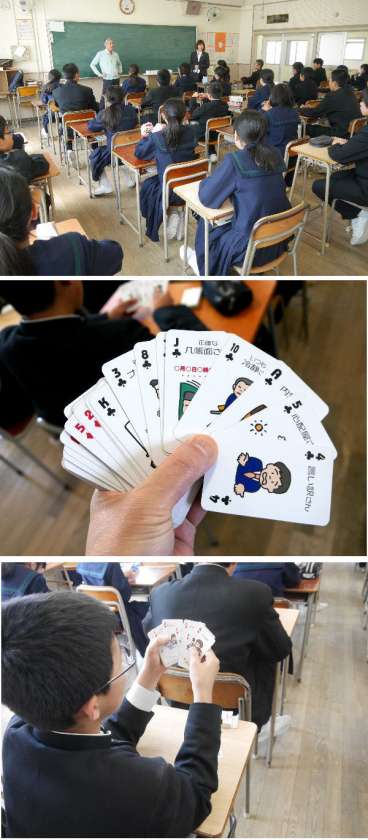 2年生では、高校の先生に来ていただき、キャリア教育学習をおこないました。SPトランプ・・サブ パーソナリティ トランプを使って、自分の性格や特性を確認し、自分の特性にあった職業を調べていきます。たくさんの性格が書かれたトランプから、自分の性格にあさたカードを10枚取り出して判断していきます。