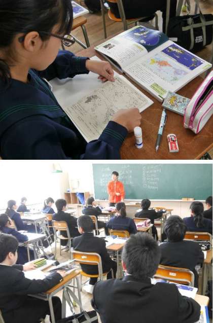 1年社会では地理を学習しています。世界の地図をみながら6大陸について学習しています。