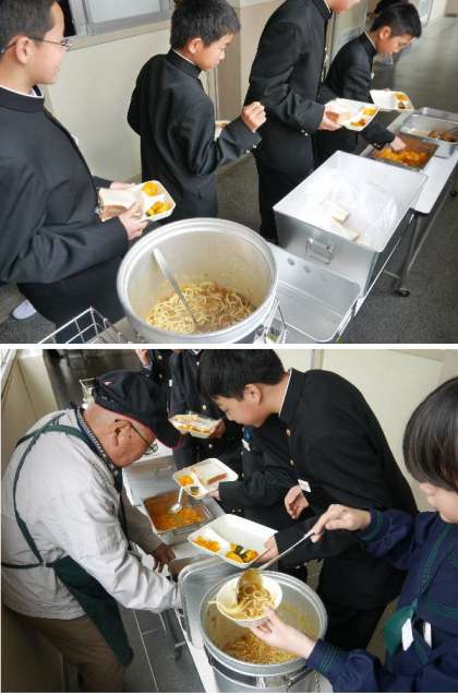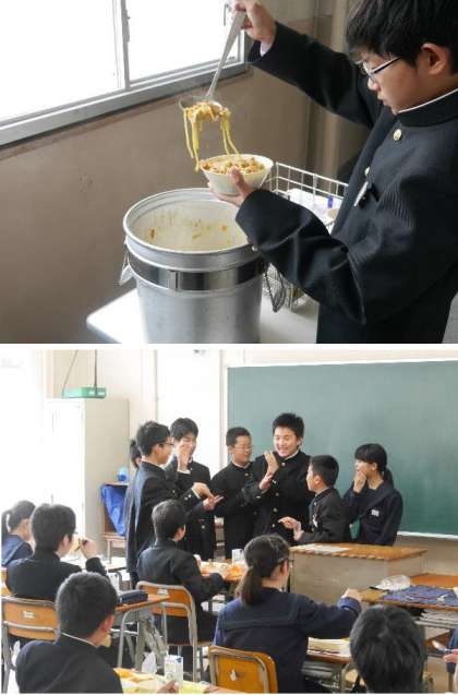 教室では、残った牛乳を獲得しようとじゃんけんをしています。