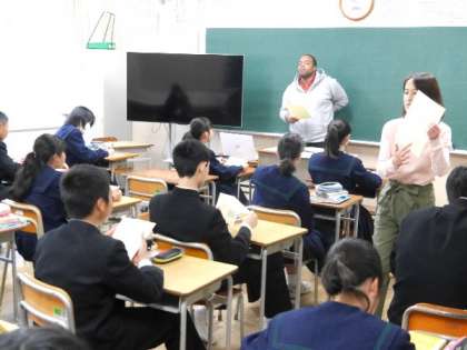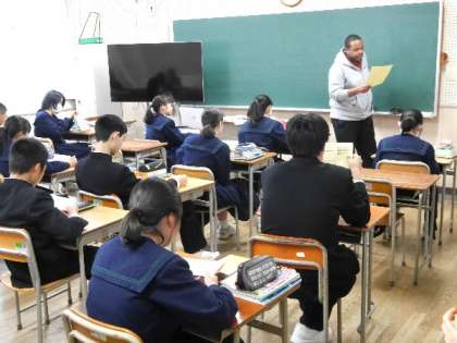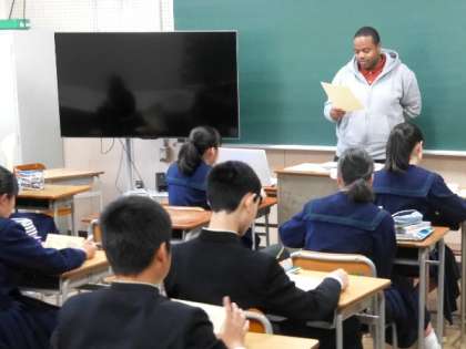 今年から、英語ネイティブのC−NETの先生が変わりました。アメリカ出身のカービィ先生です。3年生の英語の授業に教えにきてくれました。ネイティブの発音に慣れて生の英語を身につけましょう。