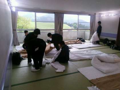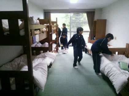 今から入館。夕食、夕べのつどいの後、室内オリンピックです。