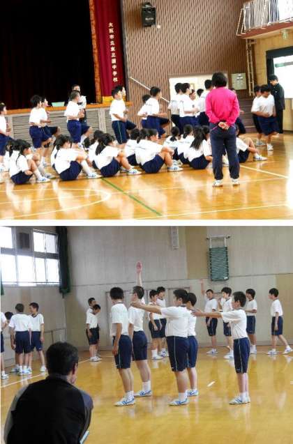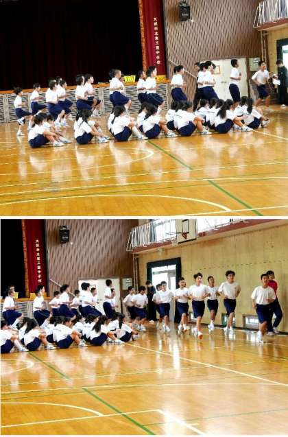 1年の体育の授業での集団行動もだいぶ上手になってきました。2年生はさすがにベテランです。