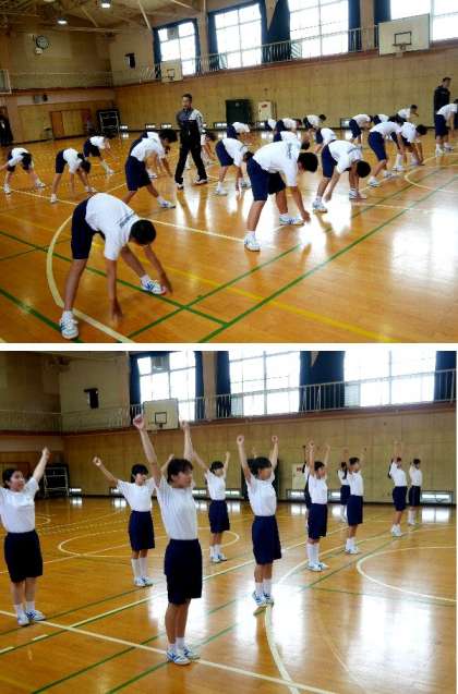 体育の授業ではラジオ体操の練習をしています。ラジオ体操も指先まで注意してするとかなりの運動量になります。とてもきれいな姿勢でがんばっています。正しい運動姿勢が身体を作っていきます。