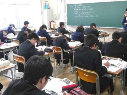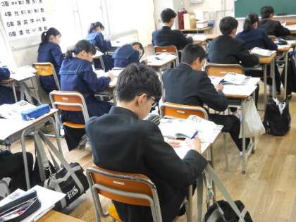3年の社会の授業です。いよいよ歴史も近代史になってきました。戦争について学習しています。3年生は授業に集中しノートもしっかりとっています。来週には中間テストがありますね。