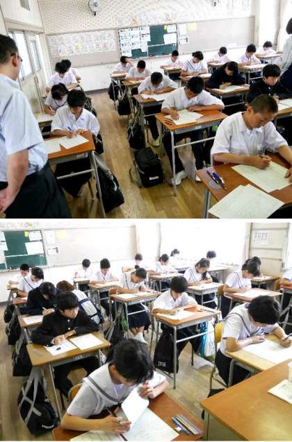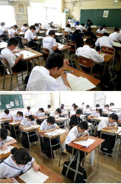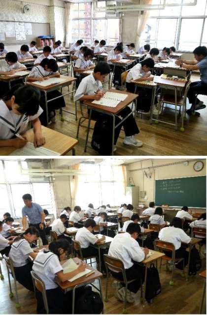 中学生になって、初めての定期テストをうける1年生です。見落としや間違いのないように、落ち着いて受けてください。時間いっぱいを使ってテストを受けられるようにしましょう。