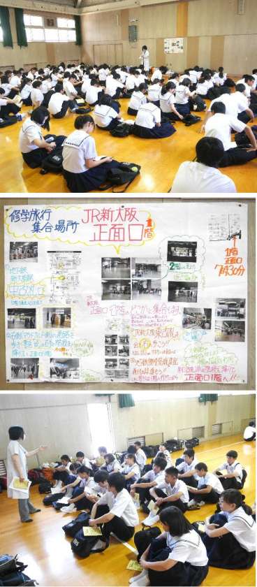 明日から3年生の修学旅行が始まります。今日は最後の打ち合わせ確認でした。しおりを見ながら、集合場所や係分担の確認などを行いました。また、宿舎での避難経路なども確認しました。最後なので念入りに確認をしました。