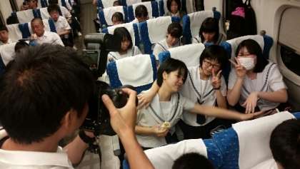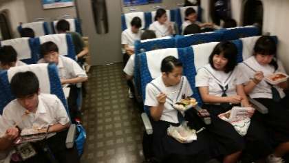 新幹線で昼食です。