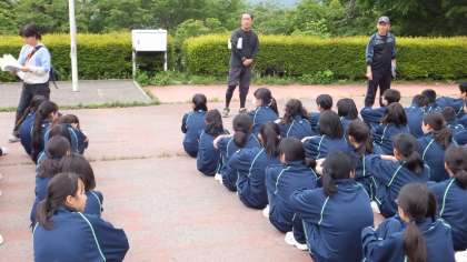 自然の家では、同じ日に宿泊・活動を行う団体の方にも挨拶します。