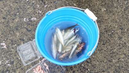 筒城浜の漁港で釣りです。アジやカサゴが釣れました。