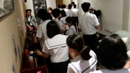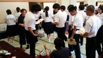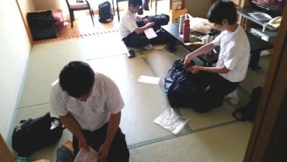 朝食を終えて、荷物を宅配便で送るタグをつけています。