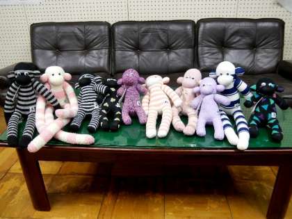3月にジュニアリーダが東北ボランティア研修でおとずれた、陸前小野駅まえの空の駅で、大阪からそれぞれが持参した靴下をあずけて作ってもらったものが、学校に送られてきました。