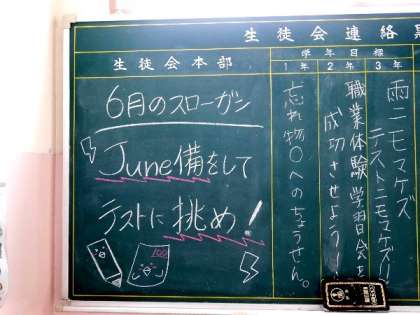 生徒会6月のスローガン!各種委員会の連絡黒板