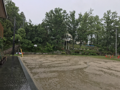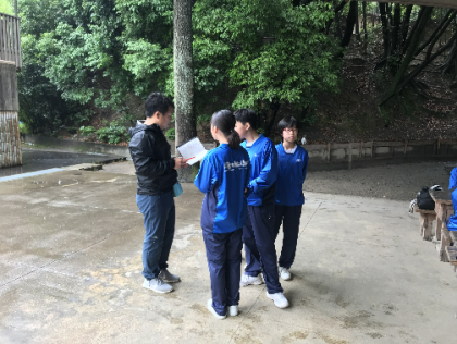 昼食後、雨が激しくなり、雷も鳴り始めたので、オリエンテーリングを学級活動の後に行うようにスケジュールを変更しました。雨の様子を見ながら今後のスケジュールを検討します