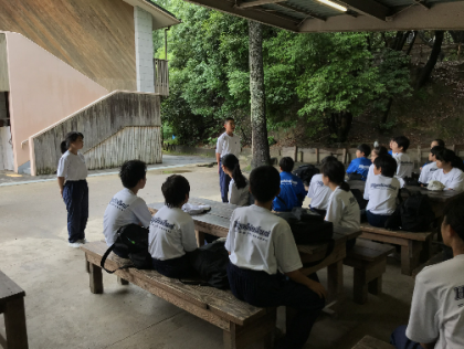 天気が回復しました。いよいよオリエンテーリングのスタートです。説明の様子です。。