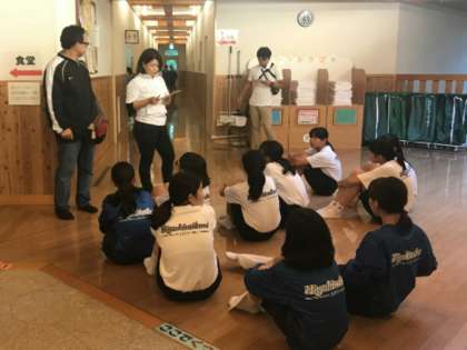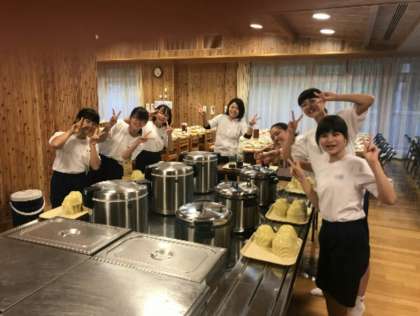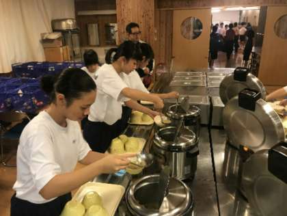 オリエンテーリングが終わり、まもなく夕食です。食事係が準備をしています。