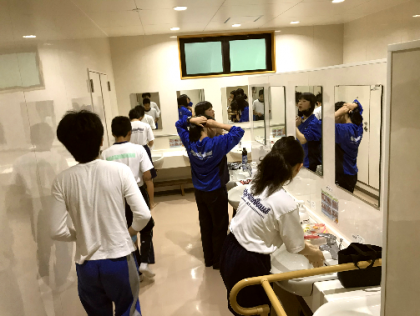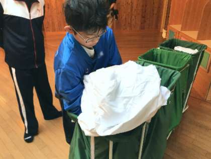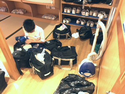 本日の活動に向けて、朝の支度をしています。みんな元気です。