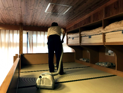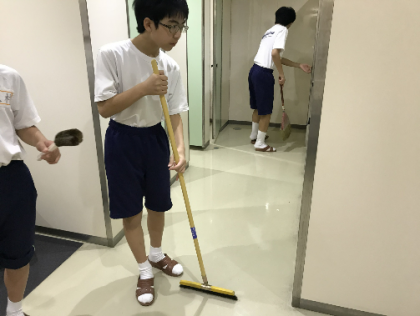 朝食の後は、みんなで使った宿舎をきれいに清掃しました。
