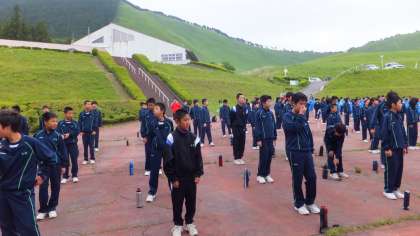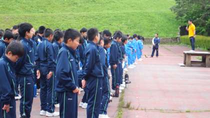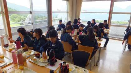 他校の生徒と一緒にラジオ体操、その後朝食です。